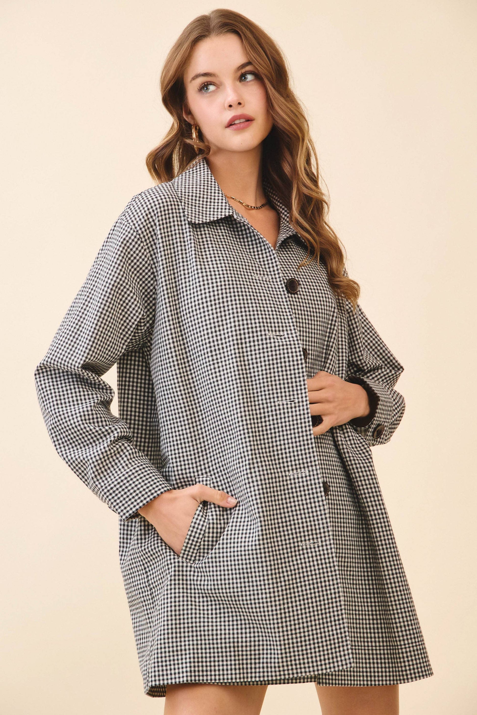 Gingham Button Down Oversized Fit Jacket