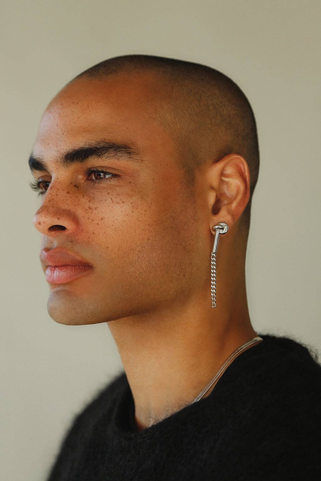 Earrings measure approx. 70mm from top to bottom Product weight 6.9 grams per earring Post fastening for pierced ears Sold as a pair Size & Fit Female Model is 5'10" with 30.5" bust, and 23.5" waist Male Model is 6' 3" with a 32" waist