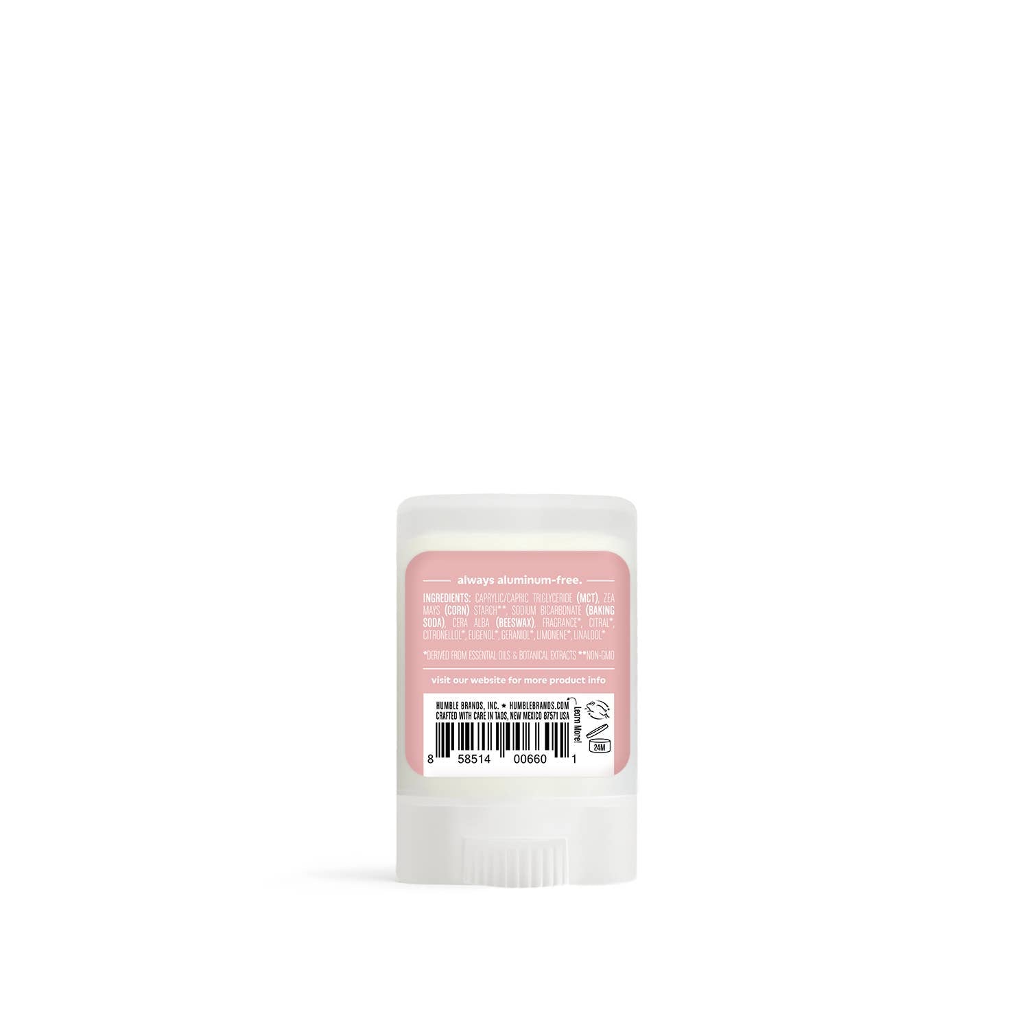 Humble Brands Deodorant is formulated to absorb and neutralize body odor. Humble Brands Deodorant has no aluminum, alcohol, dyes, parabens, sulfates or artificial fragrance. Certified Cruelty-Free by Leaping Bunny and a 1% for the Planet product that gives back with every purchase. Full size deodorant containers are made from 75% post consumer recycled plastic. Size: .5 oz / 14g
