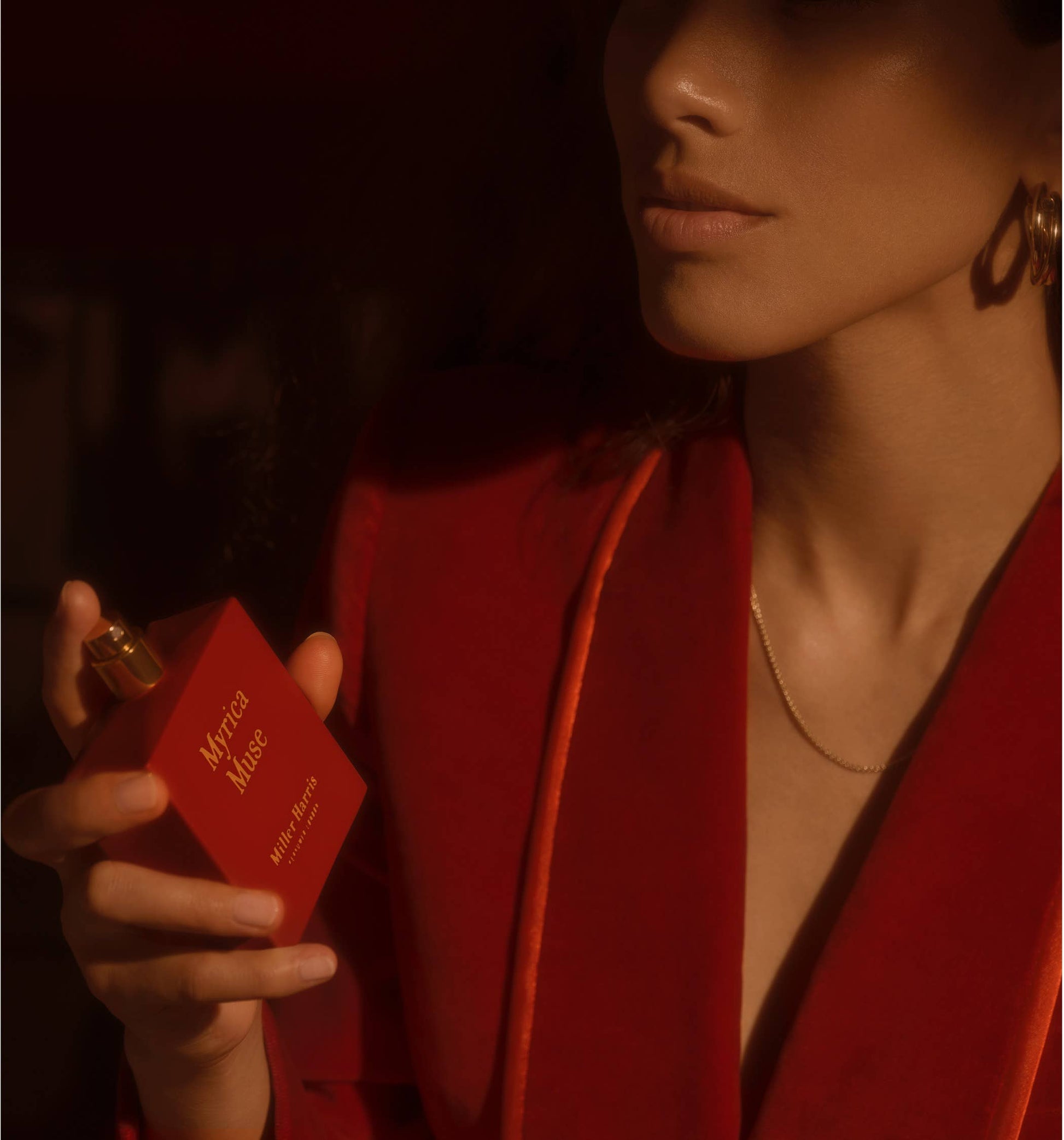 STAR NOTES: BAYBERRY | RUM | ROSE (UPCYCLED) (Myrica) Bayberry (Myrica) combines with energetic natural tangerine and pink pepper in a fruity but alluring opening. A blend of spices and a nuanced boozy character give Myrica Muse a seductive, sophisticated finish with retro charm. For the first time at Miller Harris, upcycled Rose and Patchouli then combine in the heart to envelop the wearer in a timeless floral musk heart.