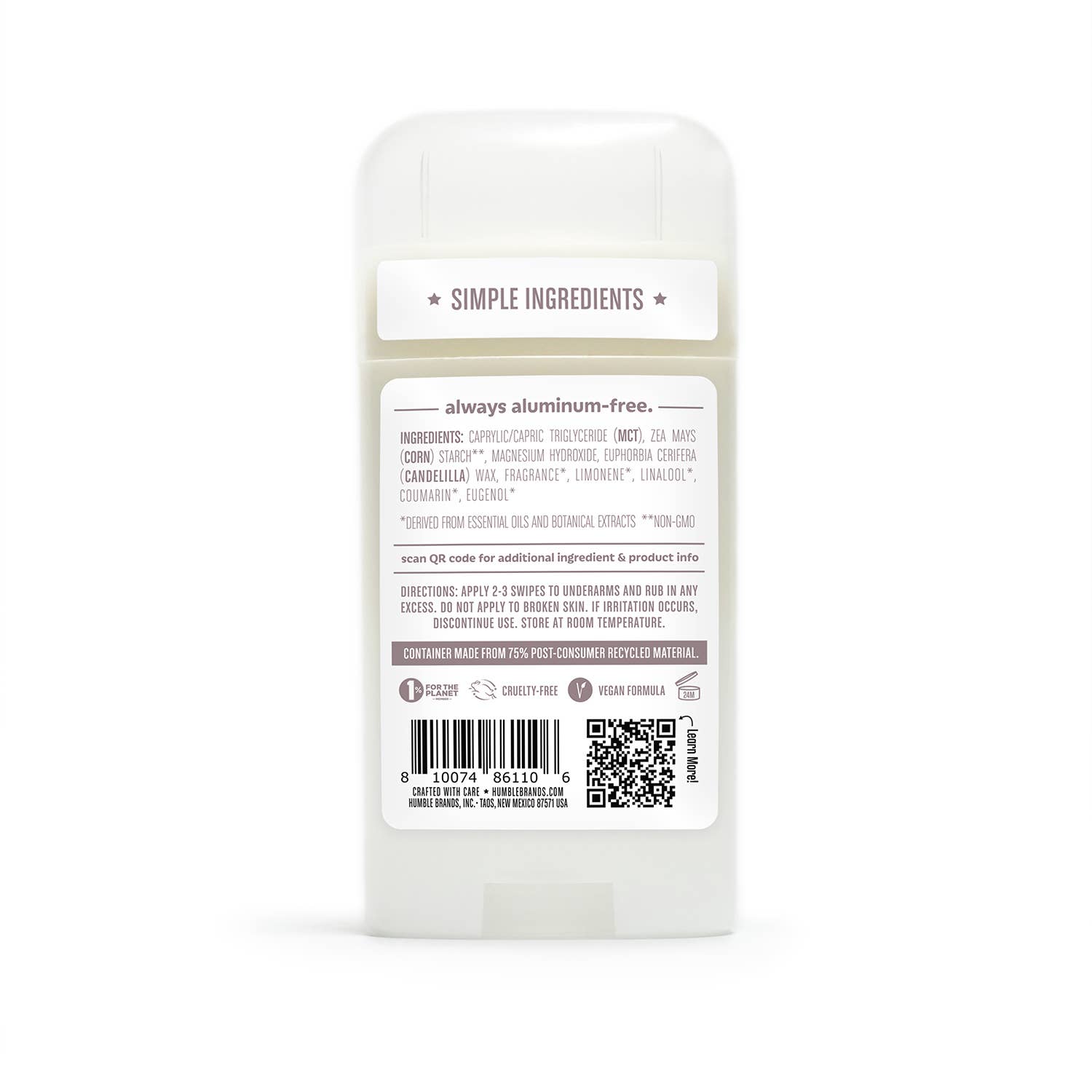 Humble Brands Deodorant is formulated to absorb and neutralize body odor. A vegan friendly and baking-soda free formula, Humble Brands Deodorant has no aluminum, alcohol, dyes, parabens, sulfates or artificial fragrance.