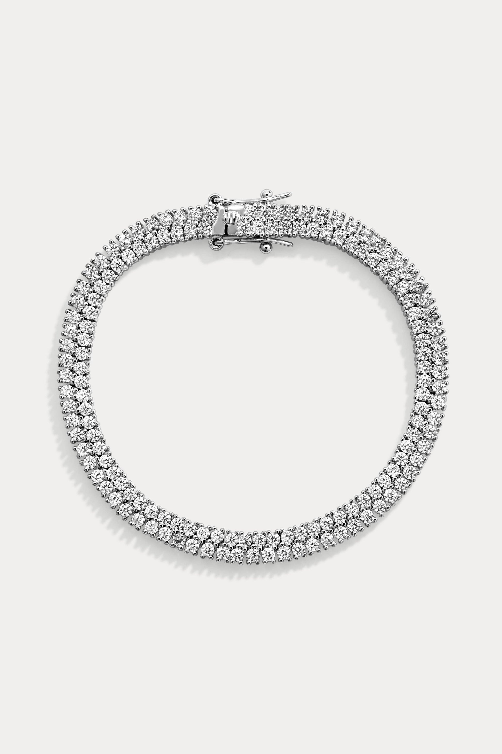 Double row tennis bracelet Available in 14kt gold plated brass or Rhodium plated brass