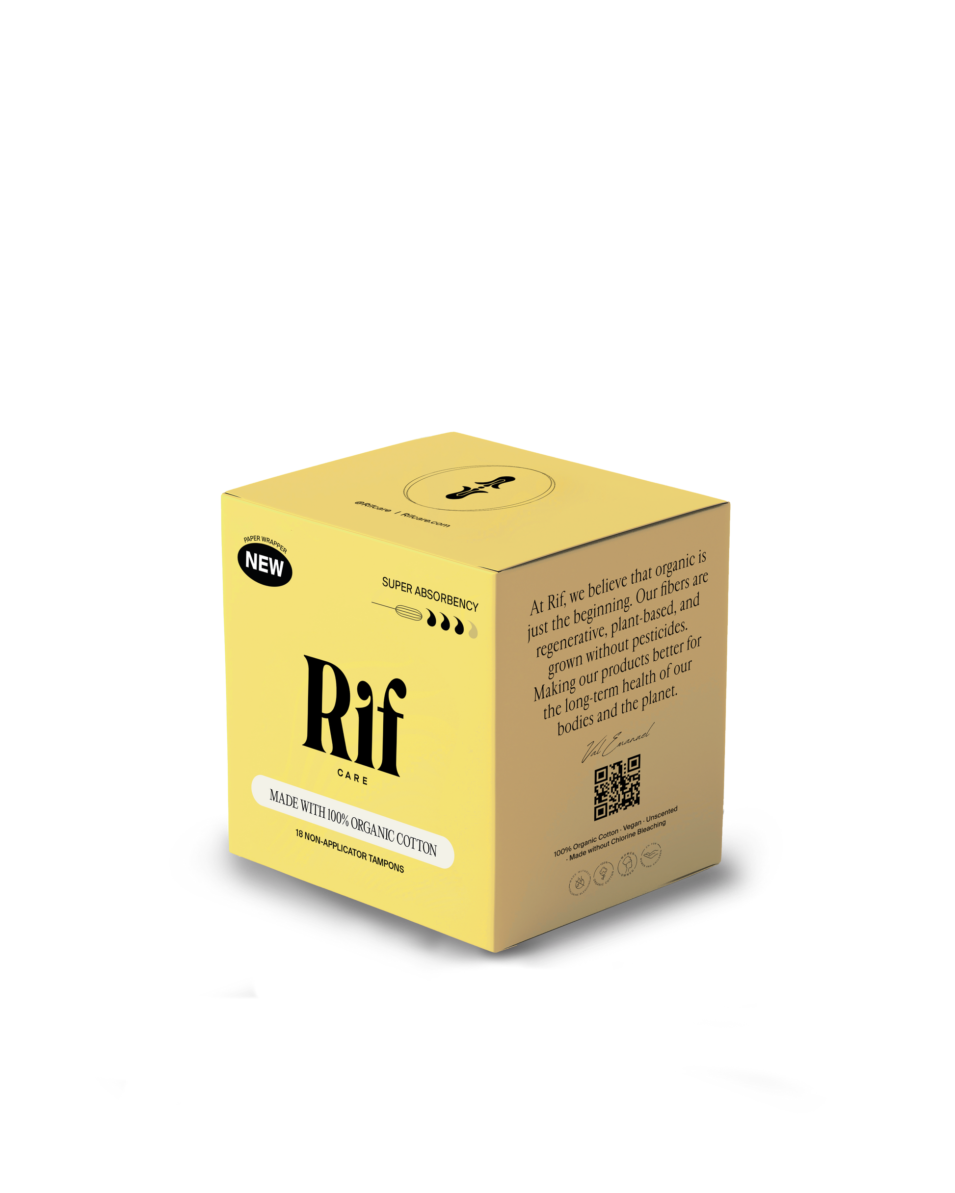100% CERTIFIED ORGANIC COTTON: Rif Care’s non-applicator tampons are made GOTS certified organic cotton making them super comfortable using the highest quality of ingredients