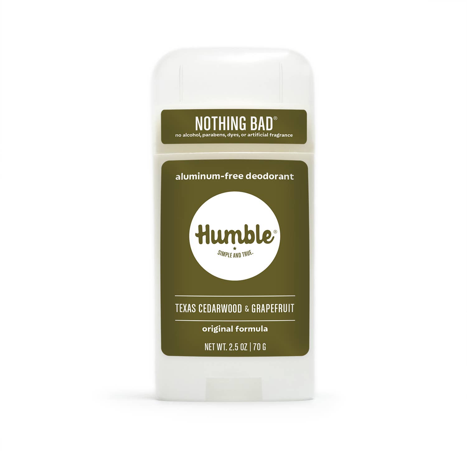 Humble Brands Deodorant has no aluminum, alcohol, dyes, parabens, sulfates or artificial fragrance. Certified Cruelty-Free by Leaping Bunny and a 1% for the Planet product that gives back with every purchase.